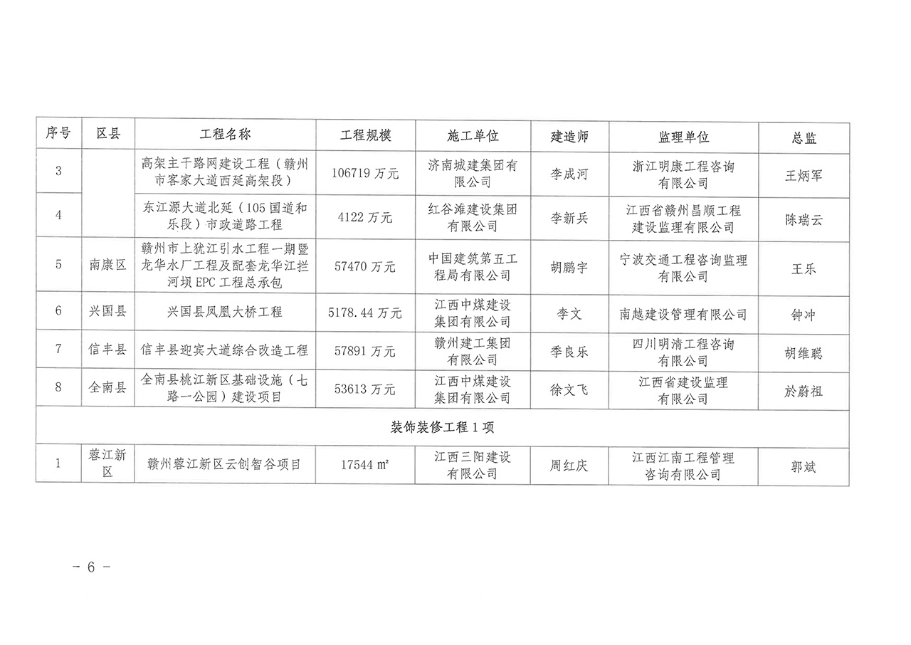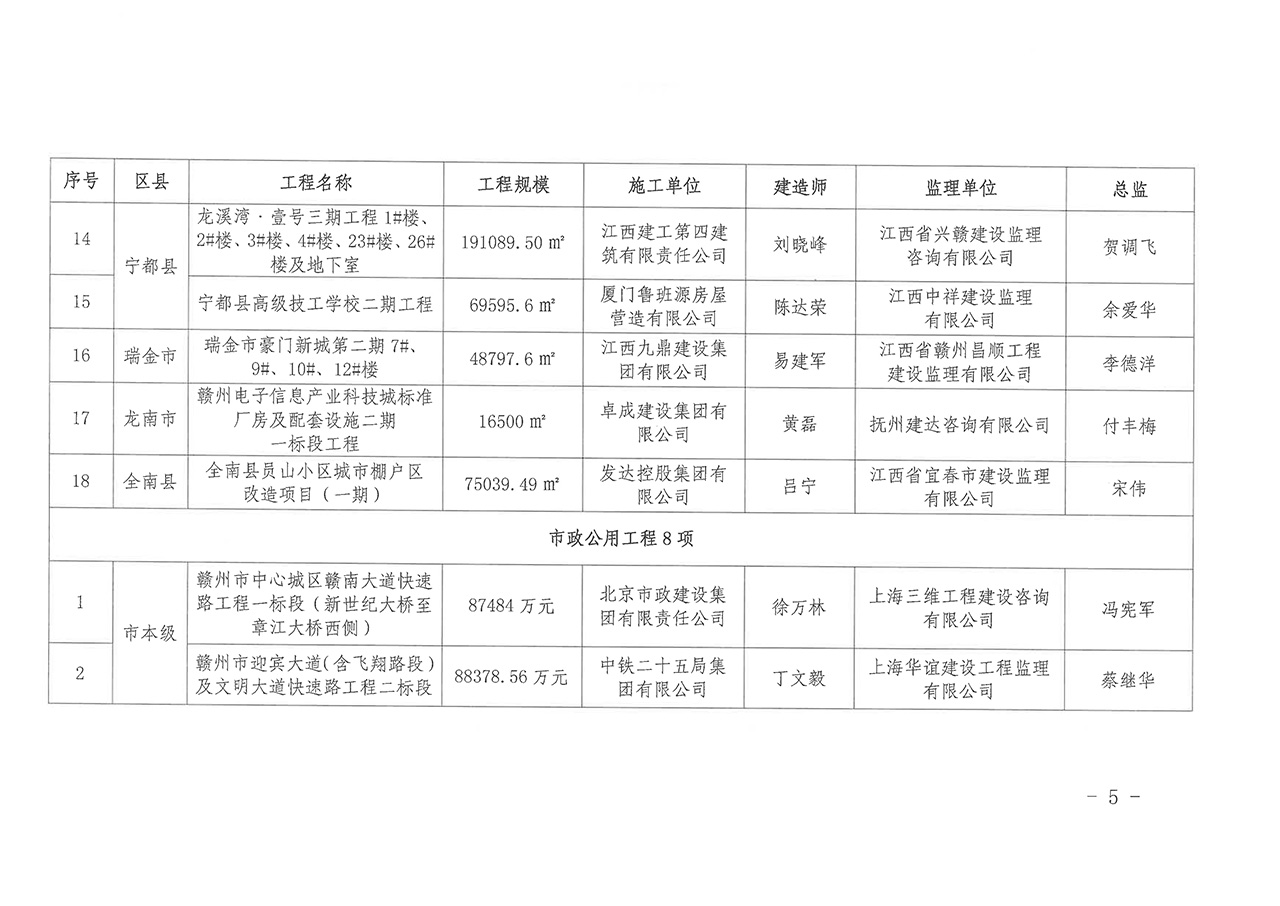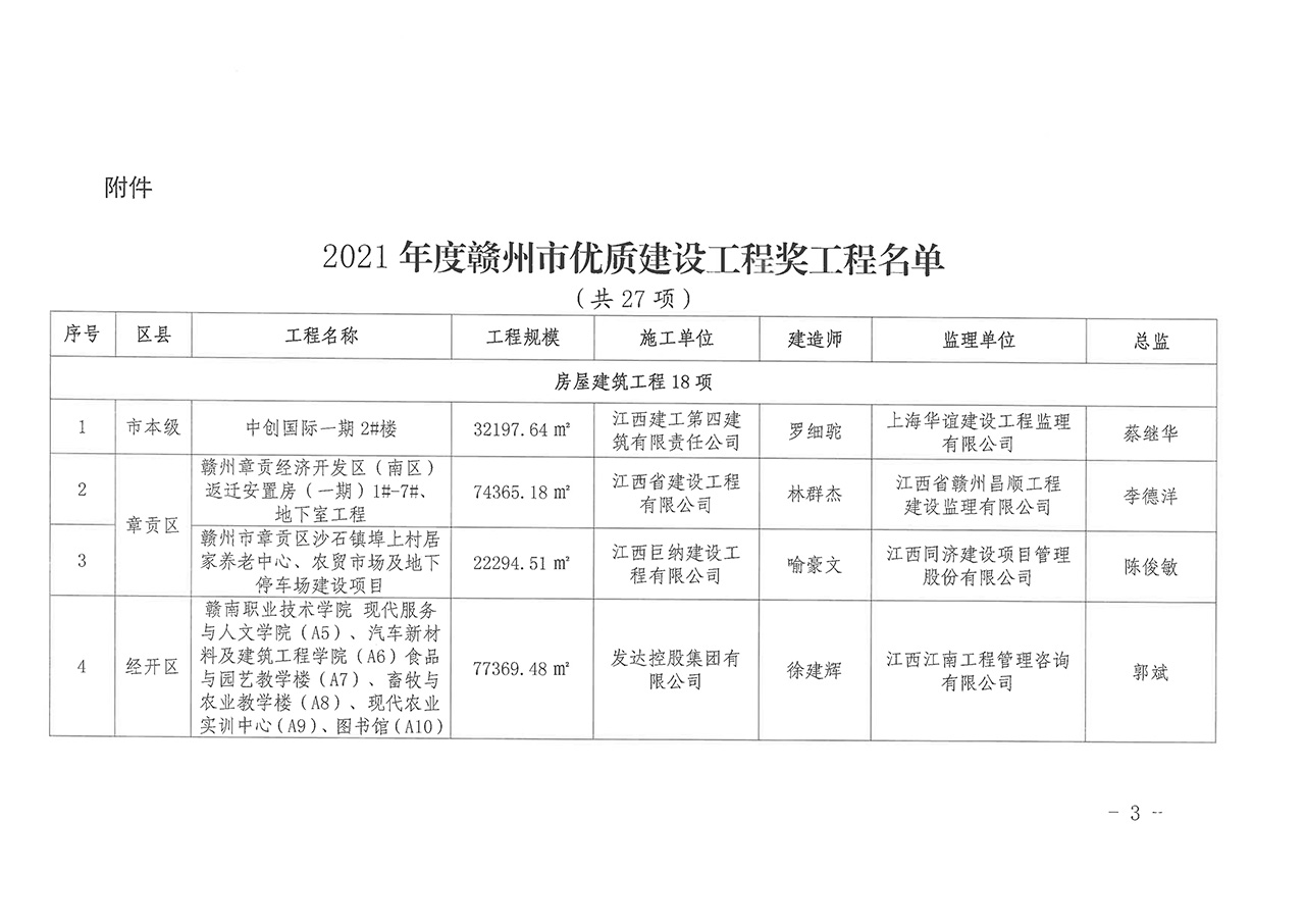 關(guān)于公布2021年度贛州市優(yōu)質(zhì)建設(shè)工程獎工程名單的通知